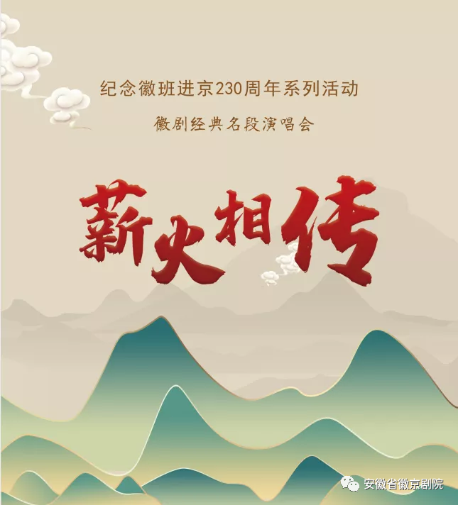 由安徽省委宣传部、安徽省文化和旅游厅、安徽省文联、安徽演艺集团主办,安徽省徽京剧院、安徽省演出有限责任公司承办的纪念徽班进京230周年《薪火相传》徽剧经典名段演唱会,于11月28日晚圆满完成。演出分为“源远流长”“古调新声”“海纳百川”“阔步向前”四个篇章。